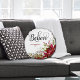 This Merry Christmas pillow design features "Believe" in modern calligraphy script, with red custom text that can be personalized with your name and date. Beautiful red floral with berries and greenery accent the design. Design is the same on both sides of the pillow. A wonderful addition to your holiday home decor!