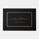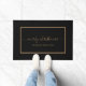 Elegant Merry Christmas Doormat with a golden script on a black background. Personalize with your family name or text.