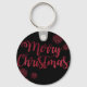 Merry Christmas Black and Red Snowflake Typography Keychain