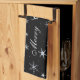 Frosty snowflakes against a black background with “Merry Christmas” printed in an elegant font.