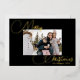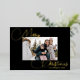 Bold and classic block frame and gold foil script lettering over black.  Merry Christmas with custom name and date.  Room for additional photos or text on reverse side.