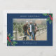 Merry Christmas Blue Custom Classic Holly Berries. A simple and elegant design featuring vintage holly and Christmas berries and a photo with messages you can customize. At the back of the card is a personalized message you can customize.