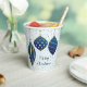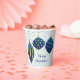 Blue and gold Christmas tree ornaments on blue and gold dots and the words Merry Christmas (or any text), these light blue background paper cups are great for any holiday Christmas occasion. MATCHING items in our store.