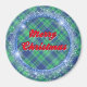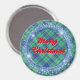 Merry Christmas Blue Plaid Faux Glitter Frame Magnet