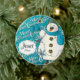 Merry Christmas Blue Snowman Ceramic Ornament