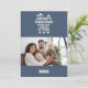 A blue grey background. Text and photo on the front. Your text and names on the back.