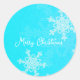 Merry Christmas Blue White Snowflake Minimalist Classic Round Sticker