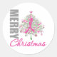 Merry Christmas Breast Cancer Pink Ribbon Wreath Classic Round Sticker