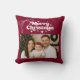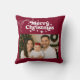 Merry Christmas burgundy photo bow hand-drawn Throw Pillow