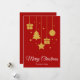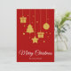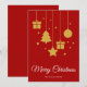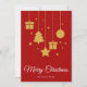 Merry Christmas in a fancy calligraphy font with hanging Christmas tree, presents, star and Christmas bauble design. This red background colour Christmas card is designed so you can change the colour of the background and also enter your family name or remove it if you wish to just have the design without the surname line.