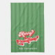 Merry Christmas Calligraphy Retro Style Red Green Kitchen Towel