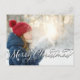 This design features a Merry Christmas holiday classic photo, with stylish trendy calligraphy silver script, and a navy blue winter plaid pattern, template for a family photo picture with traditional simple minimalist minimal classy design, a one 1 photo layout template, with classic fancy calligraphy typography and a navy blue red green white pattern, a photo Christmas greeting card, Christmas holiday postcard template