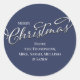 Merry Christmas Calligraphy Winter Navy Blue Plaid Classic Round Sticker