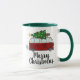 Have a rustic cup of coffee using this Christmas camper mug! The adorable merry Christmas camper hauling a tree mug has micro black dots pattern. It's a great addition to anyone's Christmas dishes!