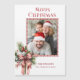 Fun and festive holiday design featuring a photo template in a candy cane frame with a bouquet of winter holly and greenery tied with a candy cane striped bow. Features Merry Christmas greeting in a unique custom font.