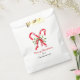 Personalized Christmas favour bags with watercolor illustration of Candy canes with holly leaves tied up with bow.
