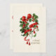 Customizable Vintage Christmas card that features a wishbone decorated with holly and berries and a red ribbon.