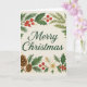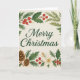 Celebrate Christmas with this beautiful greeting card featuring elegant winter florals, pine branches, berries and pine cones. Perfect for sending holiday wishes to family and friends. Merry Christmas card with festive botanical wreath design.