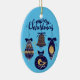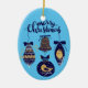 Merry Christmas pattern with bird, owl, balls and bell on a light blue background.