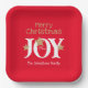Merry Christmas Customized Name Chic Script Cool Red Party Paper Plates. Click Personalize this template to customize it with the family name or