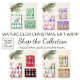This Christmas gift bag is decorated with whimsical watercolor pine trees in shades of green. It says Merry Christmas in stylish script typography.