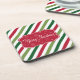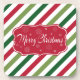 Merry Christmas illustration with text and snowflakes design on red, white and green striped background