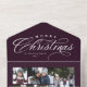 Send one of a kind Christmas greetings with this unique holiday photo card. Featuring an elegant type treatment saying "Merry Christmas" along with a collage of seven photos, this design also features a detachable section with a single photo. Include a family update on the back. Best of all, this can be folded and sent without an envelope! The rich plum purple background colour is merry and festive but other colours are available in the collection.