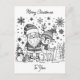Personalized Christmas postcard with colouring pages. Colouring pages are Santa and reindeer on the front. The back of the postcard has a holiday message that you can personalize.