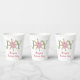 This design features a Christmas holiday cute whimsical joy, a whimsical colourful snowflake winter snow, a stylish trendy red and green, stylish trendy typography script font, Christmas holiday drinkware drink, festive cute adorable design style, Christmas holiday paper party supplies, snow snowflake winter design style, a creative simplistic minimalist minimal, coffee tea drink hot cold