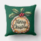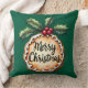 Merry Christmas Cookie with Holly Berries Green Throw Pillow