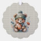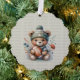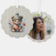 Custom ornament is a great holiday option. A great way to decorate your home for Christmas and also be used as a gift tag or Christmas card. Modern design with flowers and a cute bear holding a football. Ecru background. The ornament has a Merry Christmas greeting. You can customize the text. Add your favourite photo to one side. Use the template to create your own custom ornament.