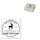 This "Merry Christmas" rubber stamps features a circle frame with a deer, a custom family name and address.