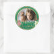 Merry Christmas Custom Photo on Green & Gold Classic Round Sticker
