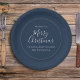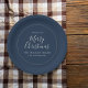 Merry Christmas Cute Calligraphy Simple Navy Blue Paper Plate