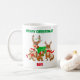 This mug features adorable Whiskers the Chipmunk, Mama Fox with Baby Fox, and a jolly Reindeer, all dressed up for Christmas.
