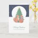 Merry Christmas Cute foxes sat in front of a Christmas tree in the snow at night - add your own personalized text to this holiday card from Ricaso