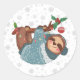 Merry Christmas Cute Hanging Sloth and Snowflakes Classic Round Sticker