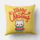Merry Christmas Cute Kawaii Kitten Throw Pillow