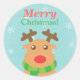 Merry Christmas - Cute Reindeer with Red Nose Classic Round Sticker