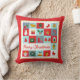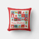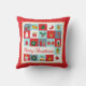 Merry Christmas Cute Retro Winter Christmas Icons Christmas Throw Pillows Cushions features the text "Merry Christmas" in modern red script typography accented with Christmas icons such as reindeer, tree, stocking, bell, snowman, gift, wreath, holly, star, candy cane, gingerbread, angel and more. Designed by Evco Holidays www.zazzzle.com/store/evcoholidays