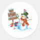 Merry Christmas Cute Snowman and Birds Classic Round Sticker