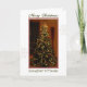 This Christmas card is for a daughter and her fiance with a photo of a Christmas tree decorated with ornaments and lights, framed in red and white with two large snowflakes on the white frame and the words "Merry Christmas" at the top and "Daughter & Fiance" at the bottom.