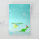 Cute Merry Christmas Cartoon Dinosaur with Your Name 3D Cut & Fold Craft Card. A cute little green cartoon dinosaur Diplodocus with red santa hat and blue Stegosaurus with red santa cap in a happy bright snow landscape with snow flakes falling from the sky and the text "Merry Christmas", personalize and change "Name"! Inside the card a sweet green dinosaur with red santa hat and snowy landscape. Personalize with your images and texts! A sweet 3D Cut & Fold PaperCraft Fun Merry Christmas card for a big little dino fan!