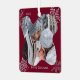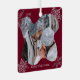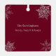 A simple Christmas ornament featuring a dark wine red background with distressed silver glitter snowflakes to add a bit of bling, and a placeholder for your favorite family photo. The vintage-style typewriter font gives the design a classic and timeless look.