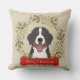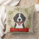 Merry Christmas Throw Pillow featuring your favourite breed, a holly wreath and red bone on a khaki background. Matching ornaments available.