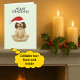 This holiday card has a happy spaniel wearing a christmas santa hat and sitting in a yoga lotus pose. The greeting on the front is simply "MERRY CHRISTMAS" or you can edit this. The message inside is also editable, or you can use the curent "Happiness is a peaceful lotus pose. And a dog. Namaste!".