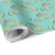 Merry Christmas Elegant Faux Gold Foil Script Golden Text Pattern on Modern Teal Background, Holiday Season Glossy or Matte Gift Wrapping Paper, you can add name or text