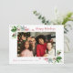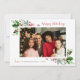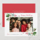 A modern design with bold text and red trendy script lettering with winter florals. Feel free to personalize the holiday image photo and text.