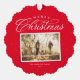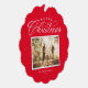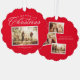 Send Christmas cheer this year with this simple and elegant red four-photo holiday card. The beautiful Merry Christmas type treatment is paired with one photo on the front and three scrapbook-style photos on the back. The festive holiday card also features an area for a custom message on the back. The bright red background colour is dotted with a starry white pattern. This elegant design is perfect as a family Christmas card, a couples' Christmas card and more. Feature vacation photos, a collage of your favourite family photos or highlights from the year. Other styles and colours also available.