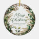 Merry Christmas Elegant Script Rustic Botanical Ceramic Ornament